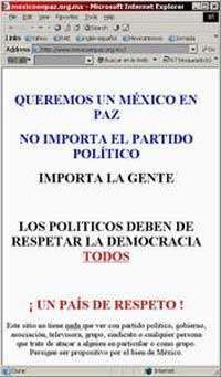 La agrupación citada tiene la página en Internet http://mexicoenpax.org.mx, donde no hay nada más que la leyenda: ''Queremos un México en paz. No importa el partido político. Importa la gente. Los políticos deben de respetar la democracia todos (subrayado). ¡Un país de respeto! Este sitio no tiene nada que ver con partido político, gobierno, asociación, televisora, grupo, sindicato o cualquier persona que trate de atacar a alguien en particular o como grupo. Persigue ser propositivo por el bien de México''. Es decir, el grupo no contiene directorio, antecedentes, número telefónico o dirección.