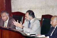Los magistrados del Tribunal Electoral del Poder Judicial de la Federaci�ernando Ojesto, Jos�e Jes�yes Orozco y Mauro Miguel Reyes Zapata, durante la sesi�n la que se resolvi�sechar el recurso de queja que interpuso el PRD para que se sancionara al PAN por rebasar el tope de campa�de 2000, lo que es considerado delito electoral FOTO Notimex