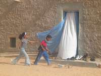 Campamento 27 de febrero, sahara. Cuando la canícula cede, los niños y las niñas salen de la escuela y se lanzan a la aventura más allá de la jaima (tienda) familiar. Las casas nunca cierran las puertas y cualquiera entra y sale, aunque no conozca a sus dueños. Los chicos llegan, se acomodan en las alfombras entre los adultos y platican lo suyo. En el Sahara Occidental, que se reivindica como el único país hispanohablante del mundo árabe, sólo una minoría habla castellano. Aquí, la lengua del Quijote toma forma de un singular mosaico de acentos: el cubano y el canario...