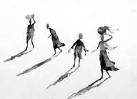 Con la precisión "oriental" que ya probara en los 80 y 90 con sus pescadores, sus palos y sus cabras alebrestadas, la serie Cuadernos de Africa (Le Promeneur-Gallimard, 2003) lo pone al lado del mejor fauve cuando "pesca" figuras en el mercado de Sanga Ibé (Malí) con haikus de colores. Las cuatro figuras y sus cuatro sombras en "El viento", papel de 1999, dicen todo en breves pinceladas: el dramatismo de un instante, un diluvio de luz solar, la poderosa acción del viento, y la gracia que, hostigada, baila.