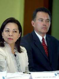 Josefina V�uez Mota y Mario Luis Fuentes, durante la presentaci�el sondeo, acto realizado en Palacio Nacional FOTO Mar�Luisa Severiano