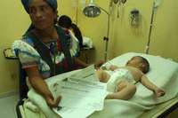Mar�G� G� muestra las recetas expedidas por un m�co para que compre los f�acos que requiere su beb�nfermo, debido a que en el hospital regional de San Crist� de las Casas - como en la mayor�en Chiapas- hay escasez de medicamentos FOTO V�or Camacho