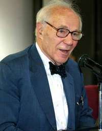 Lawrence R. Klein, durante su conferencia, ayer en la Facultad de Econom�de la UNAM FOTO Luis Humberto Gonz�z