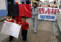 Ni�acompa�s por sus padres participaron ayer en la marcha que realizaron en San Crist� de las Casas maestros de la secci�0, en apoyo a sus compa�s de la secci�, que se encuentran en huelga desde el pasado 1� de mayo FOTO V�or Camacho