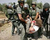 Tropas israel� arrestan con exceso de violencia a un activista por la paz extranjero que se manifestaba en el poblado de Bilin contra la pol�ca del gobierno del primer ministro Ariel Sharon FOTO Reuters