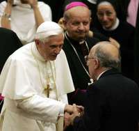 Fotograf�de archivo de Benedicto XVI, el pasado jueves durante la exhibici�n el Vaticano de la pel�la Karol, un hombre que devino en Papa, sobre la vida de Juan Pablo II FOTO Ap