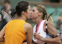 La rusa Anastasia Myskina (izquierda) saluda a su vencedora, la espa� Mar�Antonia S�hez Lorenzo FOTO Reuters