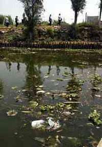 El panorama en el embarcadero es desolador, pues en sus orillas, entre los lirios, se puede ver botellas, palos y peces muertos. Basta introducir una vara y remover un poco el agua para no sólo liberar olores fétidos, sino también decenas de peces muertos.