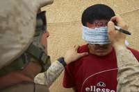 Un marine escribe un n� de identificaci�n la frente de un iraqu�etenido en Haditha FOTO Ap