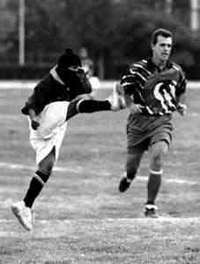 En el encuentro del 15 de marzo de 1999 en el estadio Jes�lillo Mart�z de Ciudad Deportiva, entre un equipo del EZLN y otro de ex futbolistas, entre ellos Javier Aguirre, entonces entrenador del Pachuca FOTO La Jornada