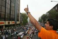 Decenas de profesores, que se encuentran en plantón en el Zócalo de la ciudad de México, caminaron desde ese lugar hasta las oficinas de las direcciones de Enseñanza Secundaria y de Personal, ubicadas también en el Centro Histórico, donde expresaron que la reforma de secundaria propone desaparecer la enseñanza de la historia nacional y de otras asignaturas.