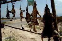 Los habitantes de Charco Cercado, acosados por la pobreza, ofrecen a los viajeros pieles de animales que cuelgan a la orilla de la carretera FOTO Mauricio Palos Gutierrez