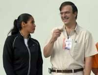 Dione Anguiano, titular del Instituto del Deporte del Distrito Federal, y Marcelo Ebrard, secretario de Desarrollo Social, dieron el banderazo de salida a la carrera Por la salud de la mujer, ayer, en la glorieta de la Diana Cazadora FOTO Mar�Luisa Severiano