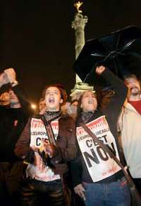 Festejo en la Plaza de la Bastilla por el triunfo del "no" a la Constituci�uropea FOTO Afp