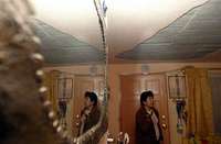 Marta Marina Méndez, con domicilio en Calle 3, lote 15, manzana 4A, mostró cómo el aplanado del techo de su sala se vino abajo mientras construían, "nada más sentimos el cimbrón, mi hija gritó, pues estaba viendo la televisión, afortunadamente no resultó lastimada. Nos quejamos, pero el encargado de la obra (Tonatiuh Ruvalcaba) nos dijo que eso no era problema de la obra, pero como no va ser problema de la obra si se dio mientras estaban trabajando".