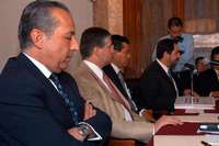 El ex gobernador Ignacio Loyola Vera, primero de la izquierda, durante la audiencia p�a ante la Comisi�e Hacienda del Congreso queretano FOTO Demian Ch�z