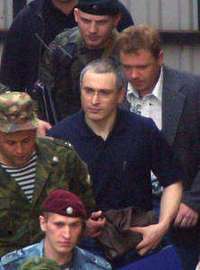 El magnate del petr� Mijail Jodorkovsky, al centro, es escoltado a las afueras de la corte de Mosc� lo encontr�lpable de varios cargos y lo conden�nueve a�de prisi�FOTO Ap