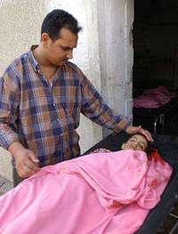 Un iraqu�bserva a su sobrina de 11 a� quien muri�nto con otros dos ni�y un t� cuando una c�ara de mortero cay�era de su hogar en un vencidario de Bagdad FOTO Ap