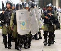 Polic� antimotines se aprestan a desalojar a trabajadores de la construcci�ue bloquearon ayer algunas calles de la capital paname�OTO Reuters