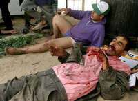 En la colonia israel�anei Tal, varios trabajadores palestinos resultaron lesionados por obuses de morteros que fueron disparados por la resistencia FOTO Reuters