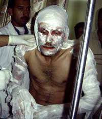 En un hospital de la ciudad de Ramadi, m�cos atienden a un iraqu�ue result�emado al estallar un coche bomba FOTO Reuters