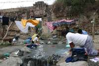 Mujeres de la comunidad Ba�e Agua Caliente, municipio de Silao, advirtieron que defender�ka fuente que los abastece de agua FOTO Mart�Diego Rodr�ez