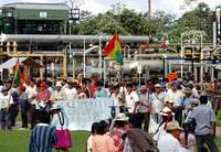 Ocupaci�el campo petrolero V�ra, que explota la espa� Repsol, por habitantes de la provincia de Santa Cruz que exigen la nacionalizaci�e los hidrocarburos en Bolivia