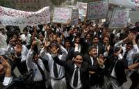 Abogados paquistan� lanzan consignas antiestadunidenses durante una protesta por la desacralizaci�el Cor�por parte de soldados del Pent�no en la base militar de Guant�mo. La manifestaci�e realiz� Lahore FOTO Ap