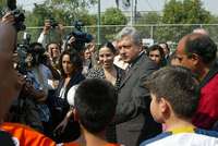 Luego de los discursos, el jefe de Gobierno y Salinas Pliego, acompañados por la delegada en Venustiano Carranza, Ruth Zavaleta, y el presidente de la Fundación Azteca, Esteban Moctezuma, realizaron un recorrido por el parque, durante el cual López Obrador llamó la atención de niños, quienes querían que tirara un penal. Algunos hasta se colgaron de él, pero no hizo el disparo porque la portería estaba invadida por reporteros y fotógrafos. Al concluir el acto, un joven se coló entre la comitiva para regalarle una pelota de beisbol y pedirle que apoye ese deporte en el Distrito Federal.
