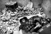 En la aldea ind�na de Huaras una mujer duerme entre los escombros de su casa tras el terremoto del lunes en Chile FOTO Reuters