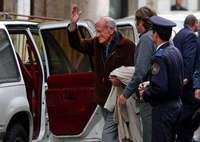 El ex dictador uruguayo Juan Mar�Bordaberry saluda al salir de un tribunal donde fue interrogado sobre el asesinato, en Argentina, de cuatro opositores FOTO Ap