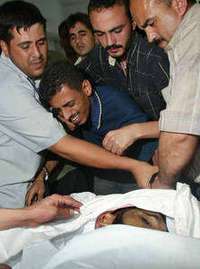 Familiares de Anwar al Atawi, de 23 a�de edad y miembro de Yihad Isl�ca, quien falleci�r disparos israel� en la franja de Gaza FOTO Ap