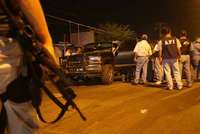 Militares y elementos de la Polic�Federal Preventiva y de la Agencia Federal de Investigaci�bservan una camioneta abandonada en la colonia Infonavit Fundadores, de Nuevo Laredo, Tamaulipas. El veh�lo presentaba 18 tiros de fusil AK-47 FOTO Carlos Ramos Mamahua