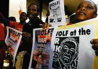 Protesta en el centro de Johanesburgo contra la visita del presidente del Banco Mundial, Paul Wolfowitz, a Africa del Sur, el pasado 17 de junio. En su primera visita al continente africano, el funcionario se entrevist�n el presidente Thabo Mbeki FOTO Ap