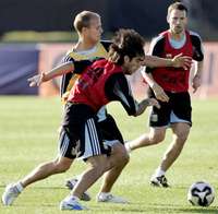 Los argentinos C�r Delgado, Luciano Figueroa (al centro) y Lucas Bernardi durante los entrenamientos FOTO Reuters
