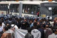Granaderos repliegan a miembros del SUTGDF que bloquearon las avenidas Alvaro Obreg� Insurgentes, impidiendo el paso del Metrob�TO Christopher Vel�uez/ Micphotopress