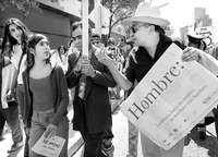 Otra cara del machismo. En marzo pasado, Lorenzo Dafirenze (centro) organiz� Marcha del Orgullo Masculino para protestar por el "maltrato" que reciben los hombres de mujeres FOTO Marco Pel�