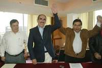 Pablo G�, precandidato del PRD a la jefatura de Gobierno del DF, asisti�la inauguraci�e la asamblea de Redir; en la foto, con Jos�ntonio Rueda y Pablo Franco FOTO Jos�ntonio L�