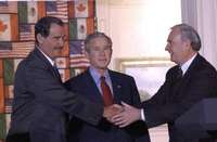 Hace tres meses, en la cumbre tripartita de Waco, Texas, entre los presidentes George Bush, Vicente Fox y el primer ministro Paul Martin, se firmó un "acuerdo ejecutivo" que se llamó Alianza para la Seguridad y la Prosperidad para América del Norte (ASPAN). Las dos "agendas" centrales del acuerdo, una sobre "seguridad" y otra sobre "prosperidad", al no tener carácter de convenio internacional, no pasaron por la aprobación de los tres congresos nacionales. Y a pesar de que contienen resoluciones "muy delicadas" para el interés de México, éstas "han pasado inadvertidas" para los...