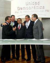 Enrique Mart�z, Enrique Jackson, Tom�Yarrington, Arturo Montiel y Manuel Angel N�Soto, del Tucom FOTO Mar�Luisa Severiano
