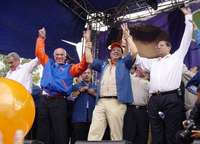 Rub�Mendoza Ayala, en cierre de campa�n Ecatepec. Lo acompa�Alberto C�enas Jim�z, Dante Delgado, l�r nacional de Convergencia, y Francisco G�te Chapa, l�r estatal del PAN FOTO Mario A. Nu�L�