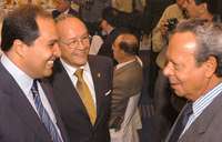 El director del Hospital de Cardiolog�del Centro M�co Nacional Siglo XXI del IMSS, Rub�Arg�ro S�hez, conversa con el gobernador de Michoac� L�ro C�enas Batel, y Jes�lva Herzog, antes de recibir la Gran Orden de la Reforma 2005 en rango de honor y grado de collar, que otorga la Academia Nacional AC por su destacada contribuci� la ciencia