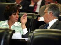 La diputada perredista Diana Bernal y el senador pri�a Manuel Bartlett, ayer en Xicot�atl FOTO Francisco Olvera