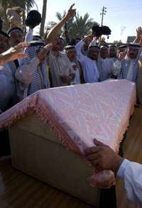Simpatizantes del decano del Parlamento iraqu�Dhari Al Fayyad, condenaron el atentado suicida que quit� vida al pol�co, uno de sus hijos y tres guardaespaldas FOTO Ap