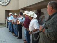 Agricultores del municipio de Ascensión que fueron demandados penalmente por la Comisión Federal de Electricidad (CFE), por delitos como motín, sabotaje y ataques a las vías generales de comunicación se encadenaron durante dos horas en la sede de la delegación estatal de la Procuraduría General de la República (PGR) en Ciudad Juárez para exigir que cese el "acoso" en su contra.