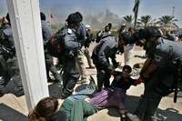 Gush Katif, Franja de Gaza, 30 de junio. El ejército israelí declaró zona militar cerrada los asentamientos judíos en la franja de Gaza, y debió tomar por asalto un hotel donde se atricheraron unos 150 judíos radicales opuestos a la evacuación de sus colonias, prevista para agosto próximo.