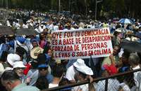 Otros contingentes fueron conducidos y retenidos a lo largo de la avenida Reforma hasta la glorieta de La Palma. A las 12 en punto, la barrera que les impedía el acceso a la glorieta se abrió. Sin mantas que identificaran su origen, movilizados todos por estructuras locales panistas, los grupos fueron ocupando los espacios que aún quedaban libres. Unos marchaban al compás de sus bandas de música, como los de San Juan del Río. Otros, como dos lideresas de Amealco, Querétaro, "nos trajimos a nuestros indígenas", dijeron. Efectivamente, detrás de las señoras marchaban unos 200 otomíes de la comunidad de San Idelfonso.