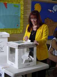 Yeidckol Polevnsky, candidata de la alianza PRD-PT, deposita su voto para las elecciones de gobernador en el estado de M�co FOTO Mario Antonio N�