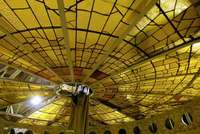 Aspecto del vitral que se restaura en el recinto de la Asamblea Legislativa del Distrito Federal de Donceles y Allende FOTO Ernesto Acosta/INBA