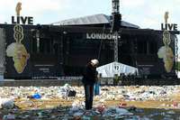 Un hombre levanta su equipo de campamento en medio de un muladar dejado en el Parque Hyde por los asistentes al Live 8, considerado uno de los m�grandes conciertos de rock en la historia FOTO Ap